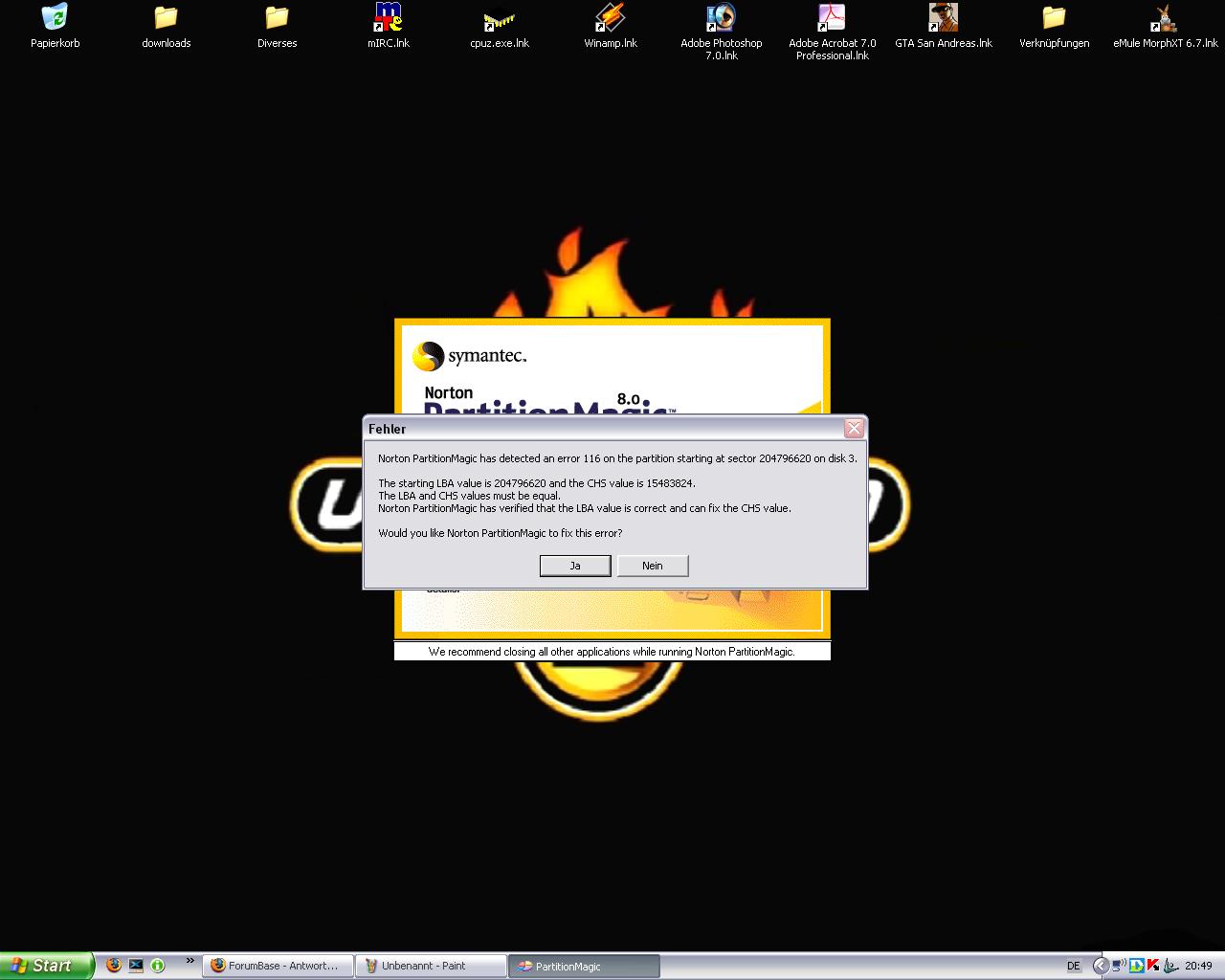 Erst war es nur bei Partition Magic, doer kam folgender Fehler.