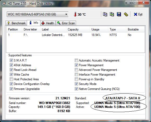 1. Festplatte: ExcelStor IDE 80 GB im UDMA 4 Modus