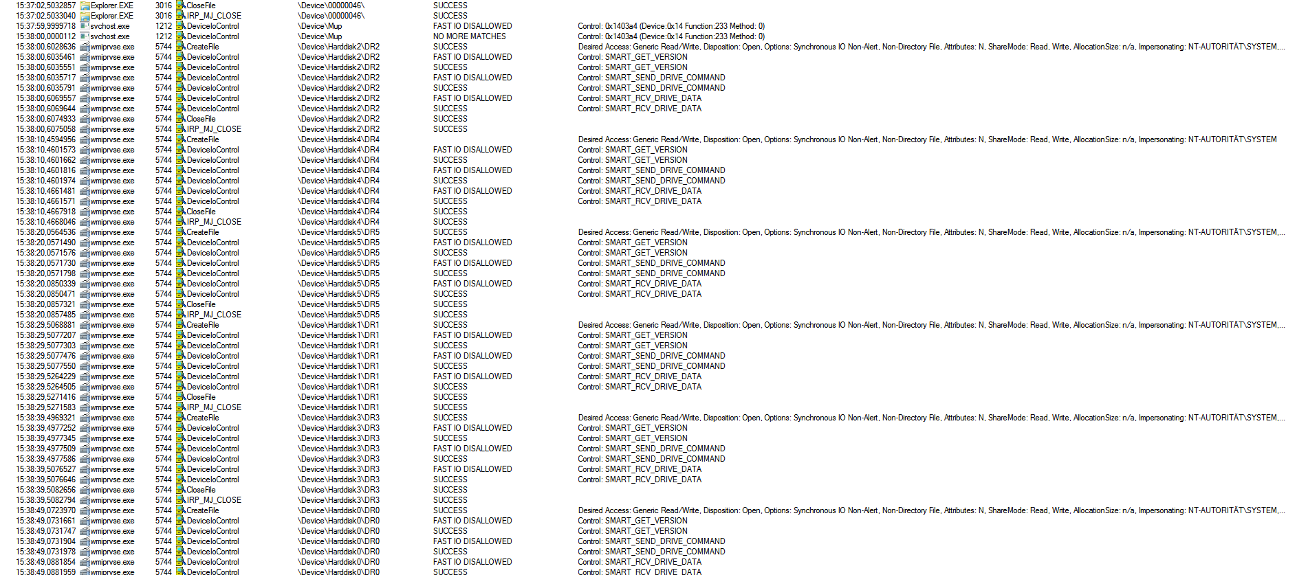 Ich habe versucht mit dem Process Monitor den Grund dafür zu finden. Häufig wird wmiprvse.exe zur gleichen Zeit ausgeführt, ich weiß aber nicht warum, da es selbst dann auftritt wenn ich gerade gar nicht am PC bin.