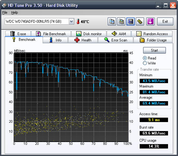 Zudem scheint es mir suspekt das die WDC gleich "schlechte" leseraten fabriziert wie die Hitachi, da die WDC wesentlich schneller ist (google zu entnemen).