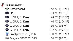 ich hab meinen pc jetzt soweit dass ich nur noch das müllige netzteil und die hdd wahr nehme (also von der lautstärke). hab mir mal solche festplattendämmkästen angeschaut aber nun frag ich mich wies da mit den temperaturen ausschaut. meine Samsung HD501LJ hat wenn der 120er lüfter davor an ist ca. 25°C und ohne ca. 30°C am sensor. wenn man sie anfasst bei augeschaltetem lüfter ist sie doch gut handwarm. wärmer wollte ich sie eigentlich werden lassen bzw. weis ich nicht ab wann es ihr schadet. ist ja doch das schlimmste was passieren kann wenn die festplatte ausfällt.