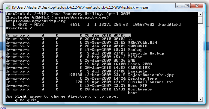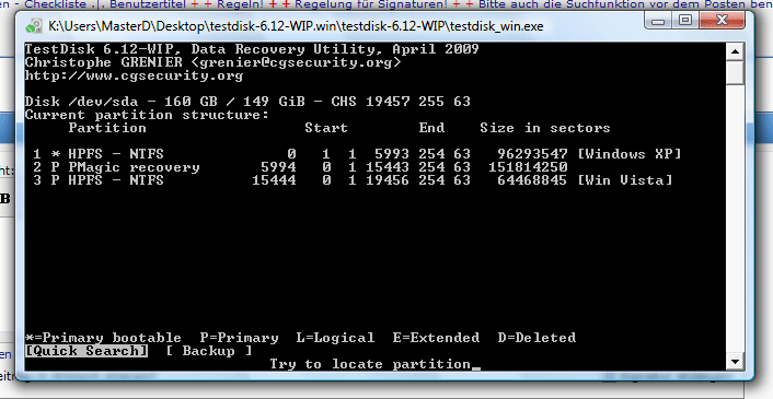 Meine Festplatte war in C, D, E, F, K Partitionen geteilt.