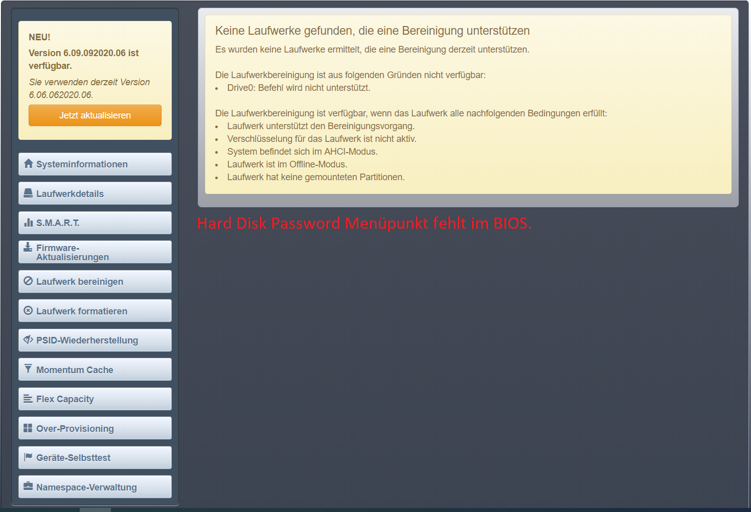 Also, trotz BIOS-Flash und Defaults, zeigt mir ein Laptop den MenĂŒpunkt an, das andere nicht. Ich bin wiederholt Punkt fĂŒr Punkt alles durchgegangen, Defaults,... Siehe Foto. Jetzt kommt's. Tausche ich die SSDs, verschwindet der MenĂŒpunkt beim einen Laptop und taucht beim anderen auf. Kann das jemand erklĂ€ren?
