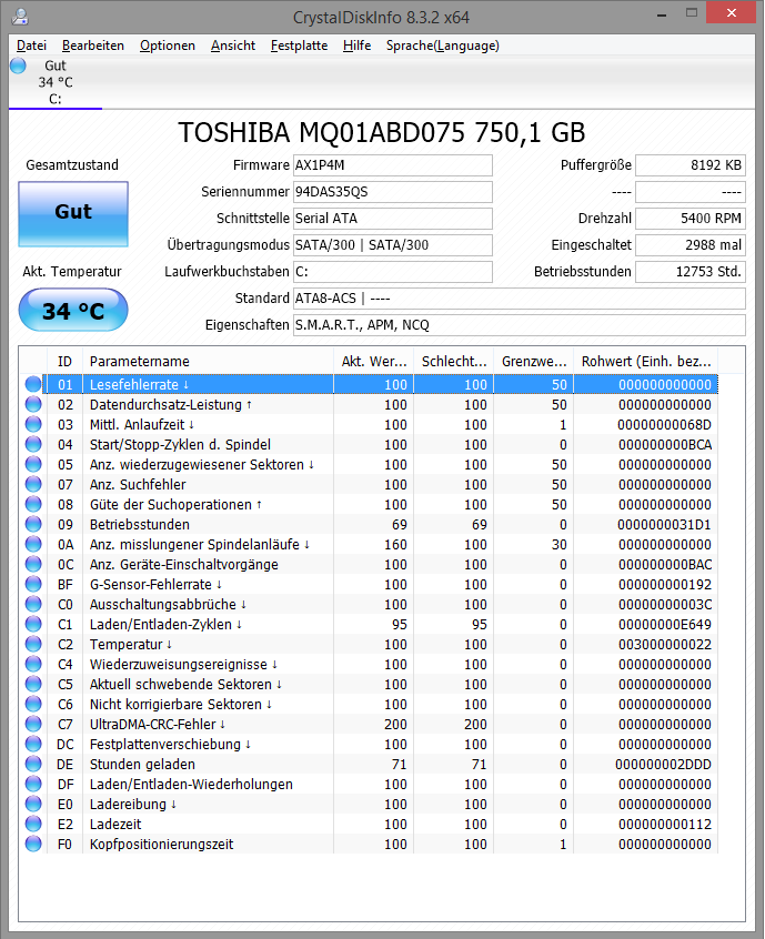 ich hab hier einen etwas älteren Laptop (AMD A4 Prozessor...) mit einer Toshiba MQ01ABD075 750 GB HDD.