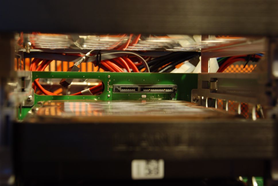 Im ersten sieht man den Anschluss im Rack und das zweite zeigt den Unterschied zw. SSD (unten) und HDD (oben).