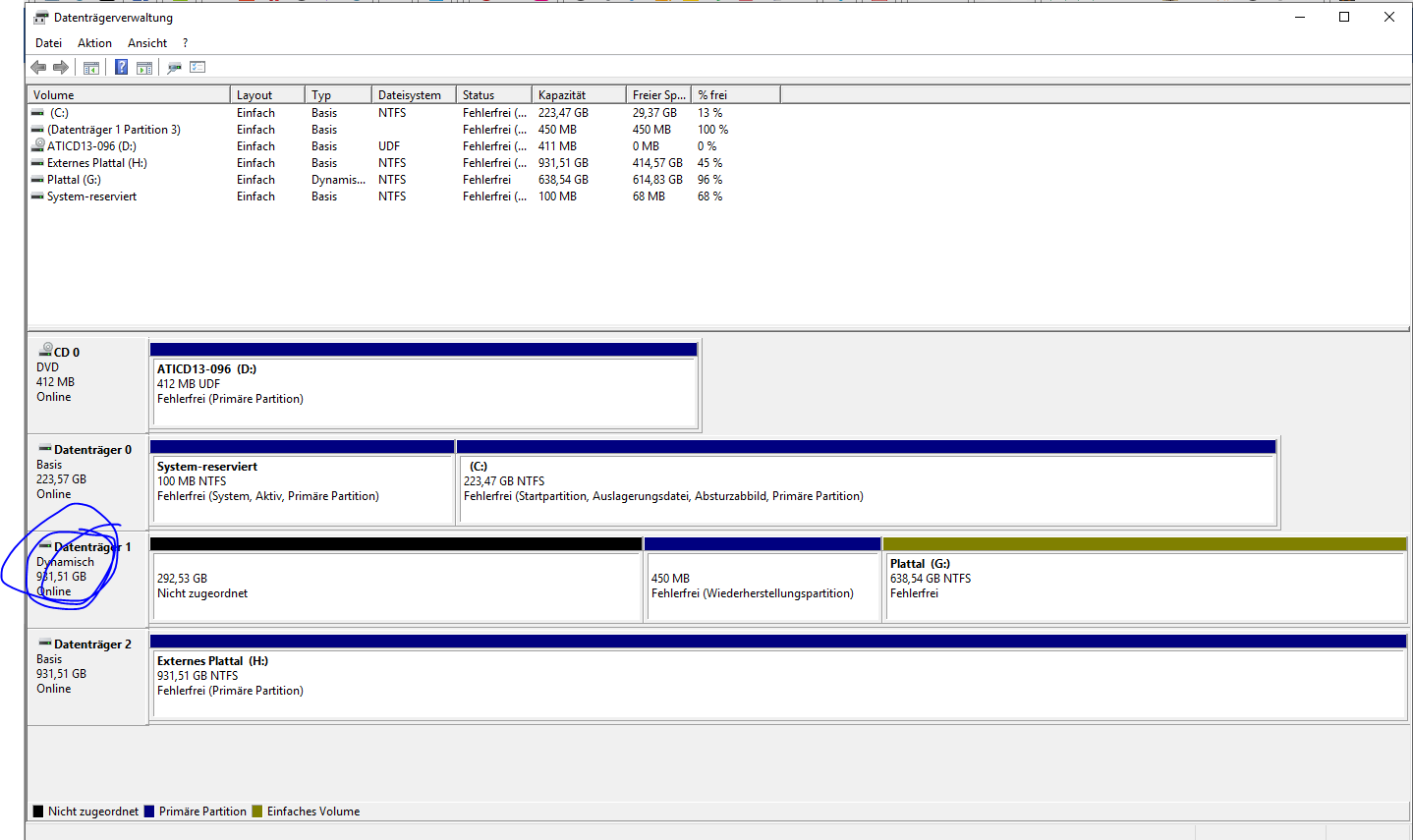 Die HDD war interessanter Weise in 3 Partitionen aufgeteilt. Somit habe ich laut Internetanleitung die ersten beiden entfernt, um sie anschließend wieder "hinzuzufügen". Ich hoffe ich habe das nicht falsch verstanden ....