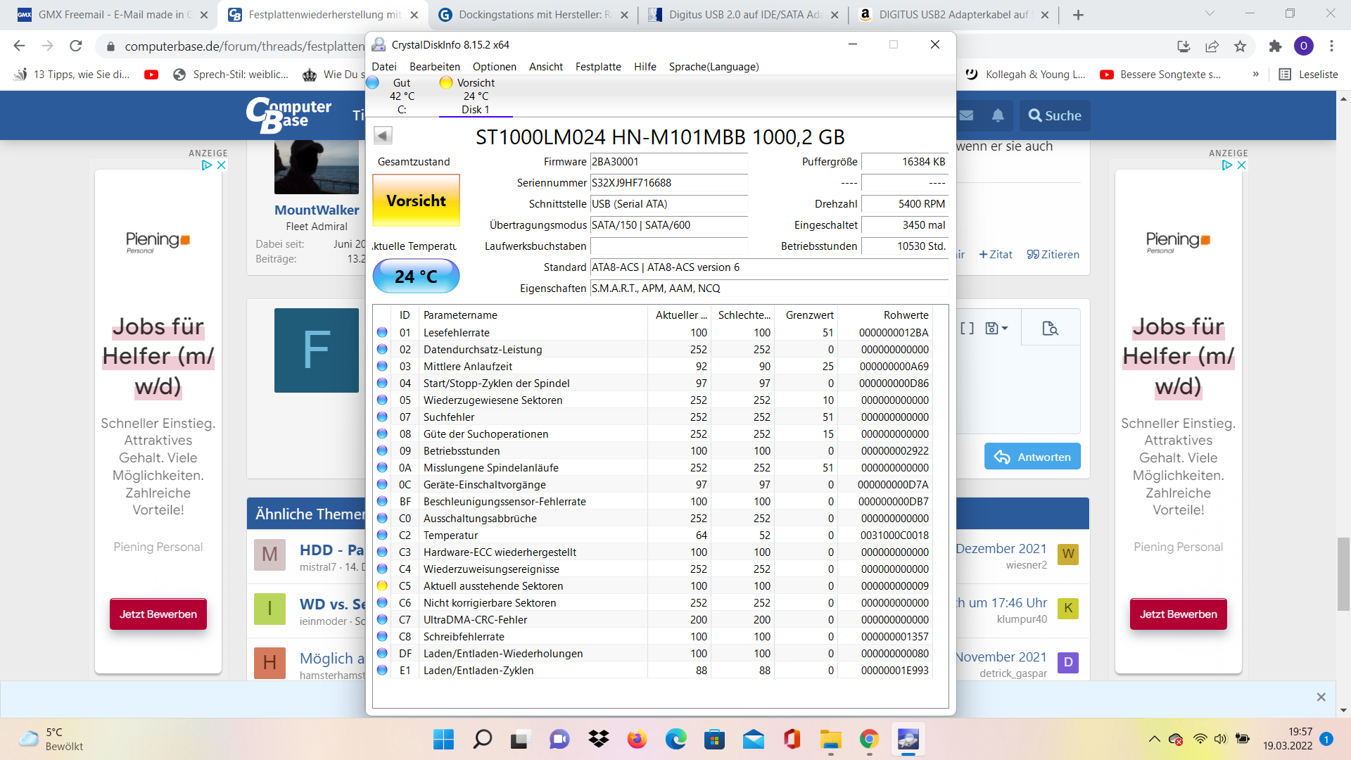 ich habe eine Frage zur Festplattenwiederherstellung. Aus meinem defekten Laptop habe ich die Festplatte ausgebaut und mit einem Anschlusskabel verbunden, die Festplatte wird mir in meinem Desktop (Windows 11) jedoch nicht angezeigt. In einem Youtube - Video habe ich gesehen, dass ein spezielles Verbindungskabel verwendet wird was breiter ist und dementsprechend auch den breiten Ausgang der Festplatte mit anschließt, ist das wirklich notwendig oder muss ich davon ausgehen, dass die Festplatte defekt ist und ich auf diesem einfachen Weg nicht an die Daten komme? Wenn das so sein sollte was habe ich sonst für Möglichkeiten?