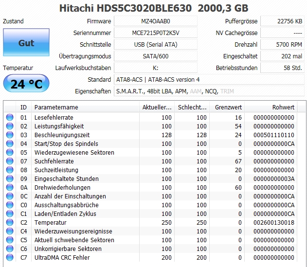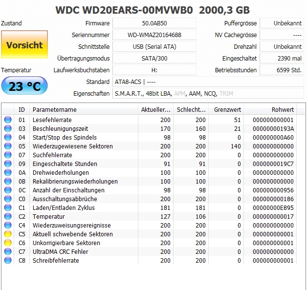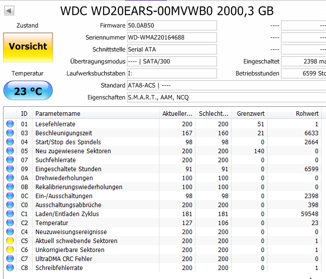 neulich hatte ich einen Festplatten-GAU und ich müsste Dateien aus einem glücklicherweise vorhandene Backup meiner Daten wiederherstellen. Die verwendete Backupplatte in einem externen Gehäuse hat keinen anderen Zweck. Wird ab und an angeschlossen, Backup drauf, abgezogen. Bei einem Image eines Spiels streikte die Platte, das Image konnte nicht zurückgespielt werden. Es gab scheinbar defekte Sektoren und das Image lag dort. Platte wurde inzwischen getauscht.