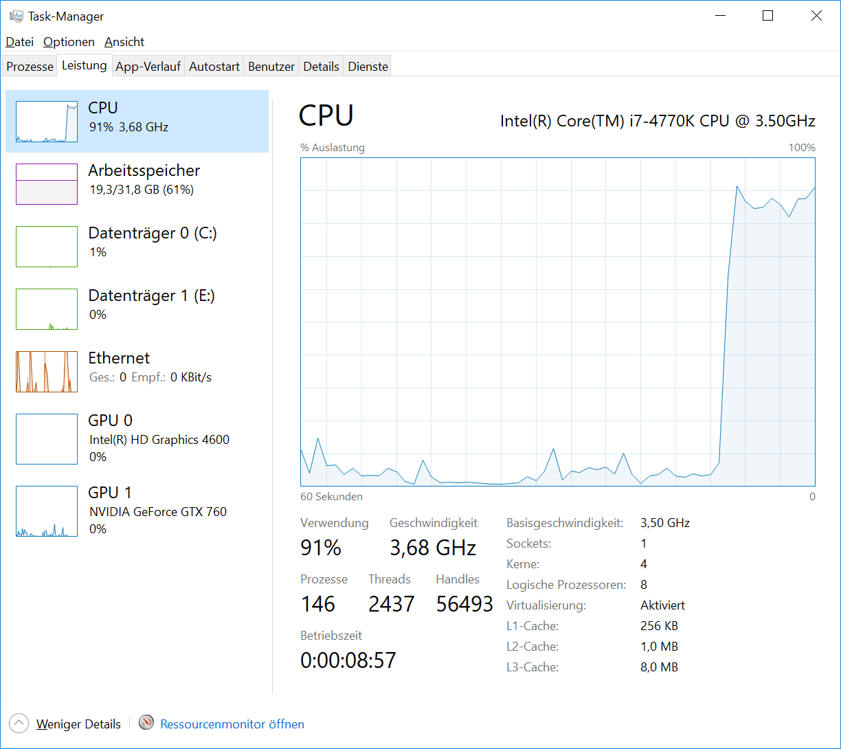 @Beitrag wie hoch ist deine Auslastung bei der GPU-Konvertigerung? Könntest du auch 2 Dateien parallel konvertiern?