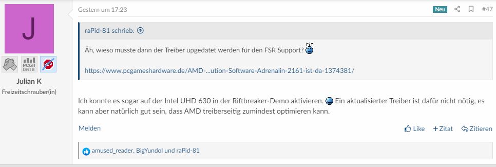 Dass AMD jetzt ne akzeptable lösung gebracht hat und damit upsacling in brauchbarem Maße auch für ältere GPUs ermöglichst ist ja schön und gut.