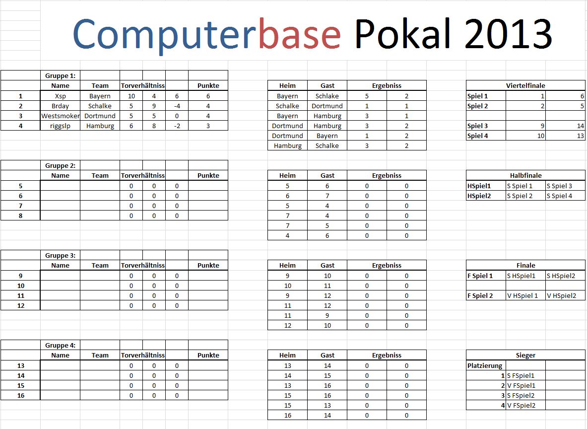 Hab heute ne Seite gefunden, auf der man Turniere und Ligen erstellen kann. Liegt alles auf deren Server und scheint auf den ersten Blick zu funktionieren. Immerhin hätten wir da nicht das Datenverlust Problem. Habe jetzt nur kurz mal rumprobiert und sieht gut aus. Eine Art Losers Cup ist nicht möglich, aber ist kein Problem nach der Gruppenphase ein weiteres Turnier bei dieser Seite hinzuzufügen, was ja auch ohne Probleme geht. Damit würde man sich wohl einiges in Excel ersparen. http://www.meinspielplan.de/plan/1dTxJF könnt ihr mal gucken, weiß nur nicht ob man da Admin Rechte vergeben kann, ansonsten würde ich einfach mein Login mit den Admins teilen. Können natürlich auch bei Excel bleiben, so richtig intensiv mit dem Online Script habe ich mich noch nicht befasst, sieht aber ganz gut aus!
