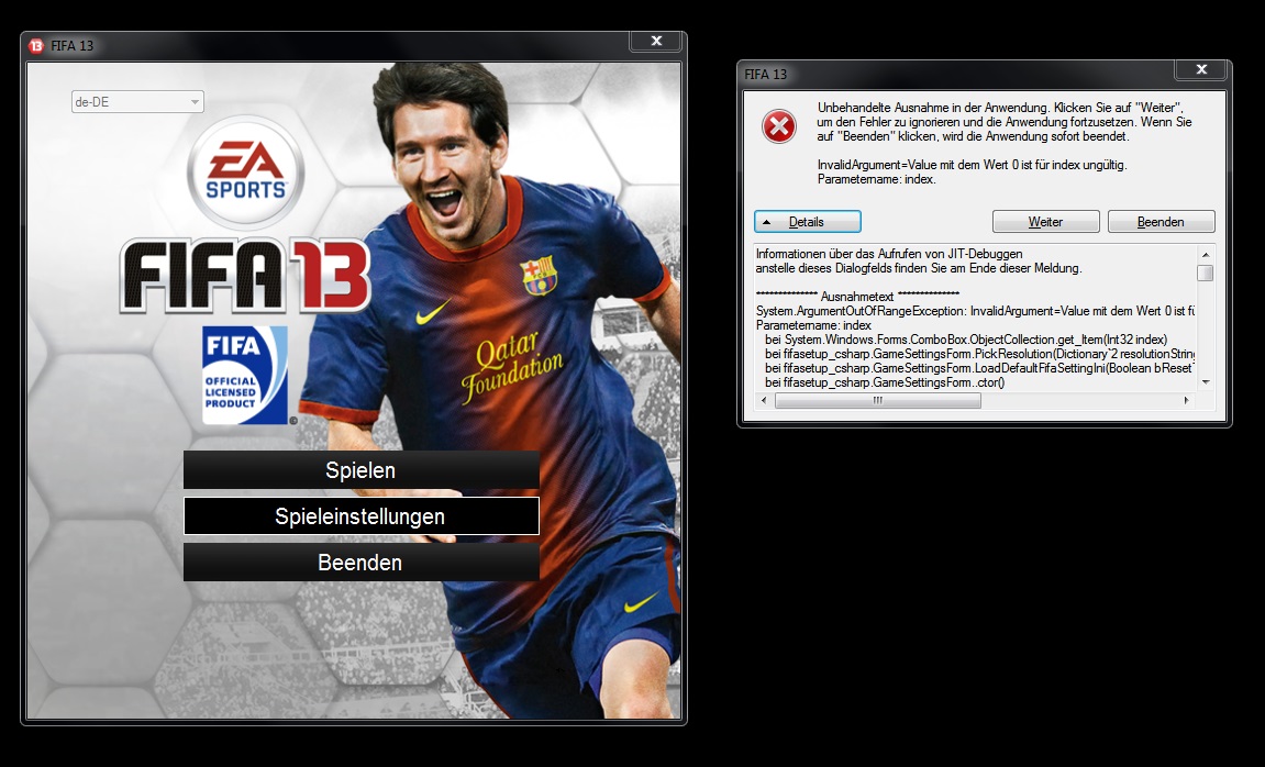 Wenn ich diese Fehlermeldung schließe, crasht mein Fifa und ich kann es nur noch beenden.