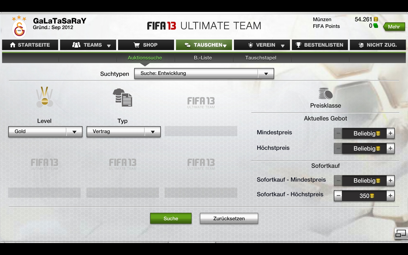 Nochmal: Stell den Filter auf "Goldverträge + 350 Sofortkauf".