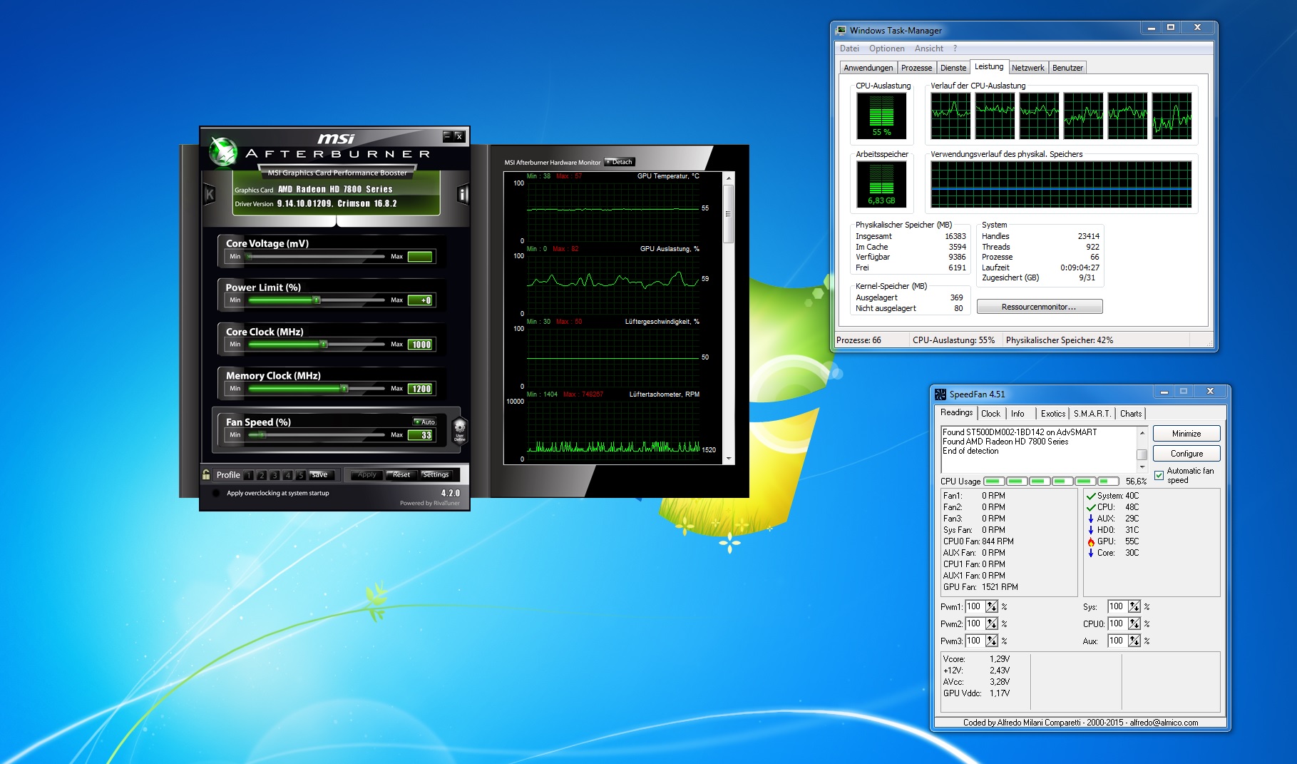 HD 7870 Shappire 2 GB DDR 5 ( Temperatur (Speed Fan) 54-57 Grad. Sowohl in Fifa 16 als auch Fifa 17.