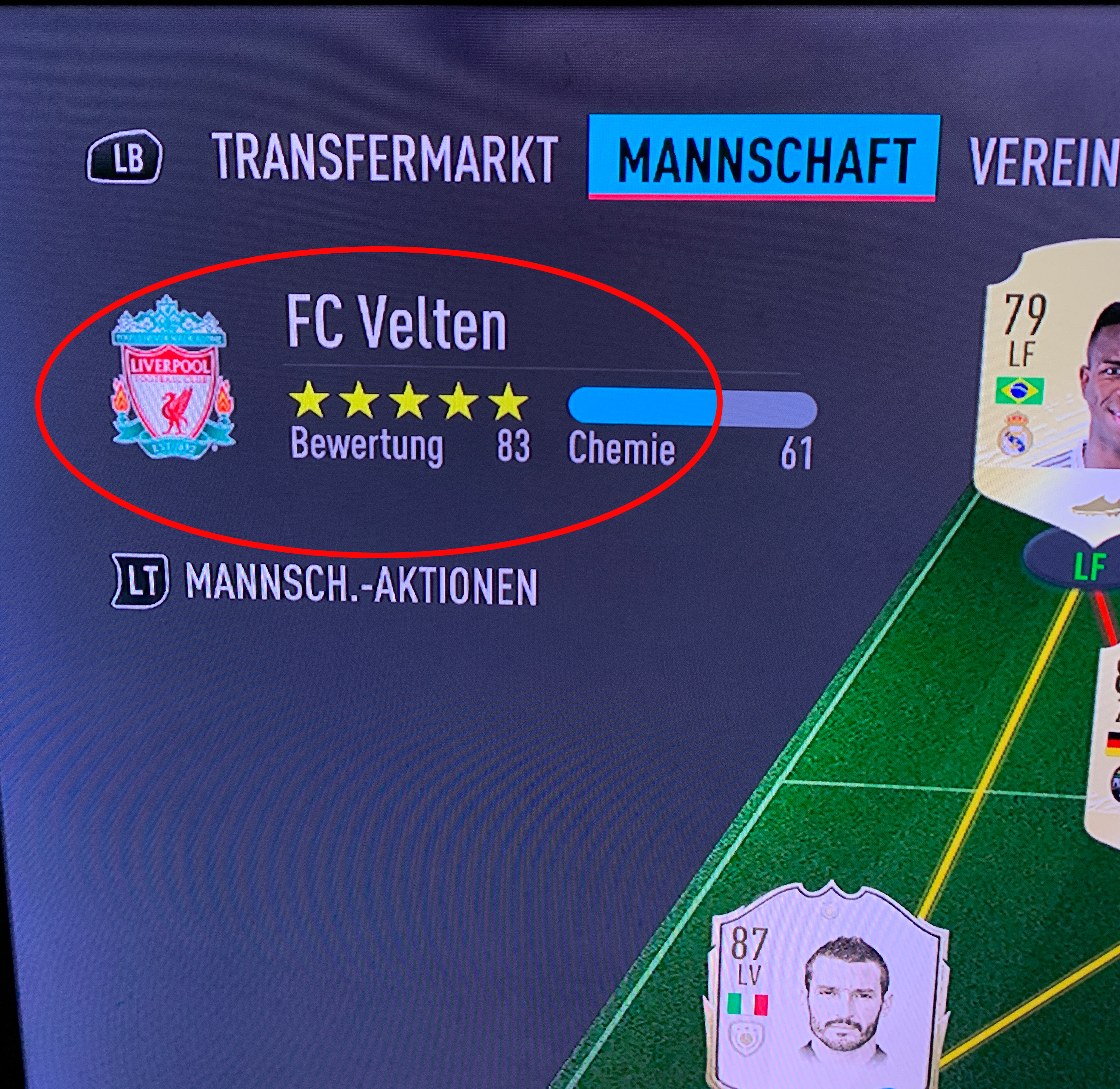 ich brauche Hilfe für meinen Sohn, er hat FIFA 20 zum Geburtstag bekommen und hat jetzt seine Mannschaft erstellt mit der er Online spielt. Das Problem, er hat seiner Mannschaft einen Teamnamen gegeben aber der wird im Online Spiel nicht angezeigt. Es wird immer ein anderer name angezeigt. Und zwar den er in FIFA 19 hatte obwohl er ihn geändert hat im Spiel beio FIFA 20. Kann ihn/uns da jemand helfen was da falsch läuft? Und wie man den Namen auch Online angezeigt bekommt?