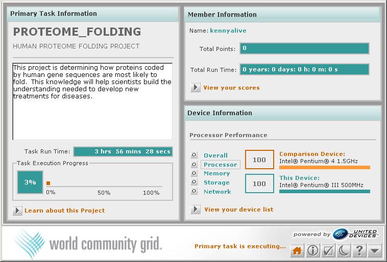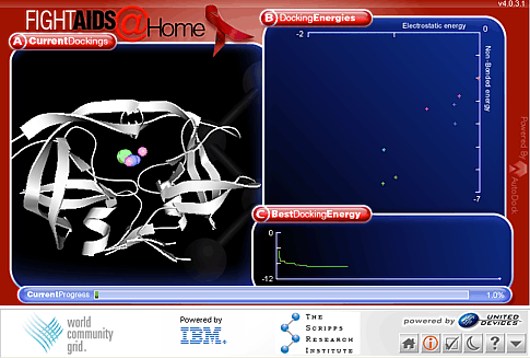 Im Grunde ist das Verfahren vergleichbar mit dem knacken eines Geheimcodes. Man probiert schlicht alle möglichen Kombinationen durch, bis man die richtige gefunden hat. Die Software simuliert wie sich mögliche Heilmittel mit Proteinmoleküle binden und ob sie sich als Hemmstoff eignen. Diese Berechnungen sind äußerst komplex und langwierig. Damit die Suche nicht Jahrhunderte dauert, kommt es schlicht auf eine große Rechenkapazität an. Das World Community Grid ermöglicht es, diese Arbeit auf viele kleine einzelne Rechner zu verteilen. Dein Rechner wird Teil eines humanitären Super-Computers, der ein Heilmittel für Seuchen diese Welt sucht.