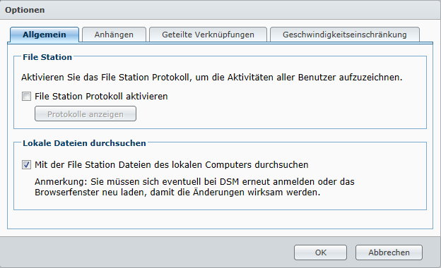 Ich finde unter File Station > Optionen aber nur Folgendes: