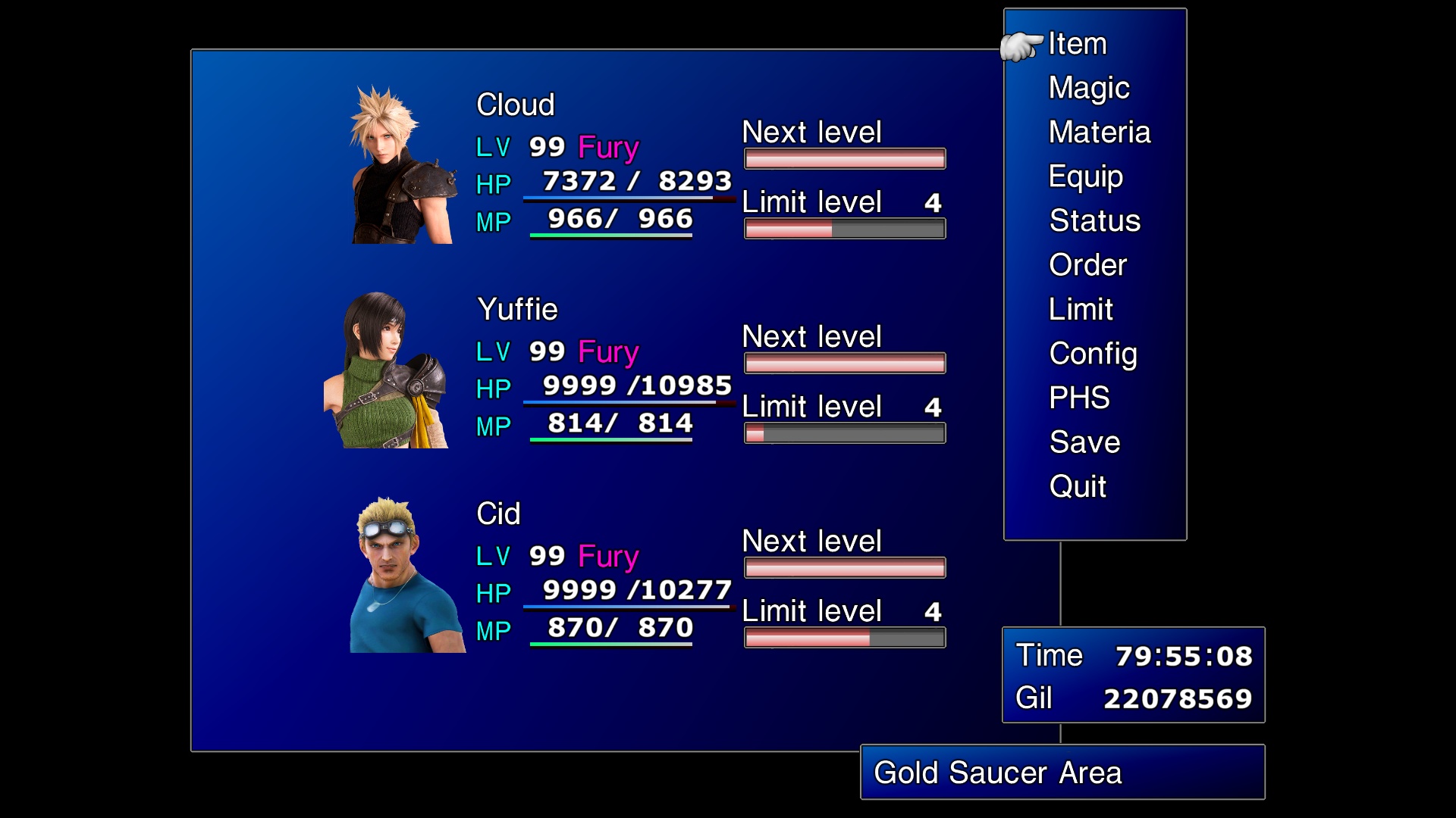 Die "Gameplay Tweaks" von Qhimm wiederum bieten neben ein paar Quality of Life-Features die Möglichkeit, die EXP- und AP-Belohnung anzuheben für schnelleres Leveln des Charakterlevels sowie zum Mastern der Materia. Passend dazu wiederum kann aber auch, um die Schwierigkeit des eigentlich eher leichten Spiels anzupassen, die HP der Gegner um einen Wunschfaktor angehoben werden. Das macht manche Kämpfe nicht nur länger, sondern erfordert vor allem bei Bossgegnern auch eine neue Strategie sowie das Haushalten mit Items und Magiepunkten. Auch das Level der Gegner lässt sich um einen festen Faktor anheben. Dadurch verändern sich die Werte der Gegner dahingehend, dass der Spieler weniger Schaden anrichtet und gleichzeitig mehr Schaden abbekommt.