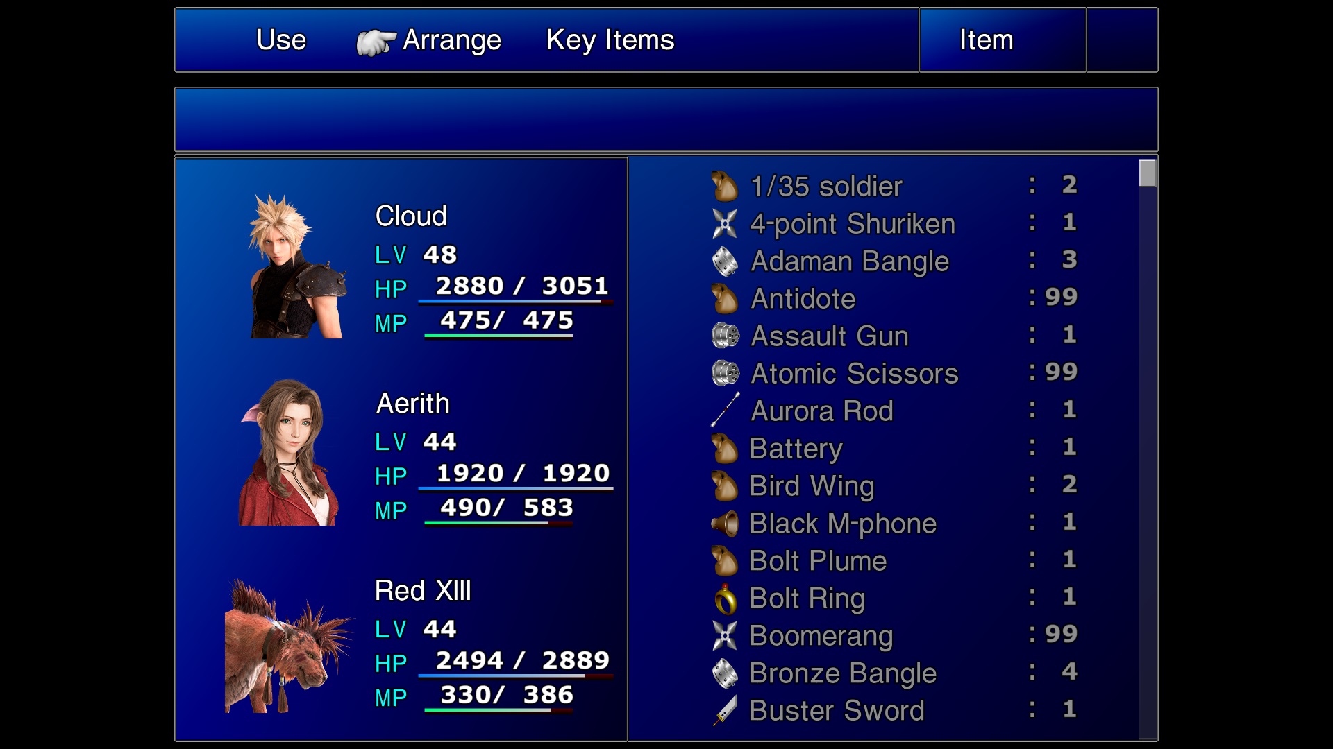 Und hier kommt ein echter Elefant im Raum. Diese Mod ist besonders für alle gedacht, die das originale Spiel und das originale Storytelling in- und auswendig kennen. SegaChief, der Autor dieser Mod, hat nahezu jeden Gameplay-relevanten Aspekt des Spiels überarbeitet. Materia, Waffen und Ausrüstung - zum Teil neue in allen drei Bereichen - wurden neu in der Welt platziert, die Gegner haben geänderte Werte und zum Teil auch geänderte Steal- und Morph-Items sowie andere Kampfbelohnungen. Es gibt zum Teil auch vollkommen neue Gegner - nicht nur Models, auch Scripts und auch die Reihenfolge und Art vieler Bossgegner hat sich hier verändert.
