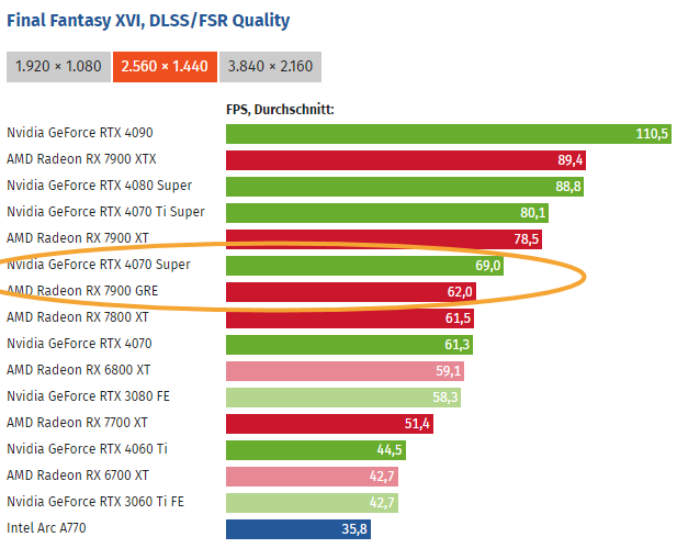 Bei Dir geht es um einen Benchmark-Durchschnitt, bei mir ging es um die Newsmeldung, für die wir hier gerade Kommentare schreiben. In Final Fantasy XVI ist die 7900 GRE weiterhin etwas langsamer als die 4070 Super. Außerdem kann man sich darauf einigen dass die Karten nicht viel voneinander trennt, egal in welcher Richtung.SweetOhm schrieb: