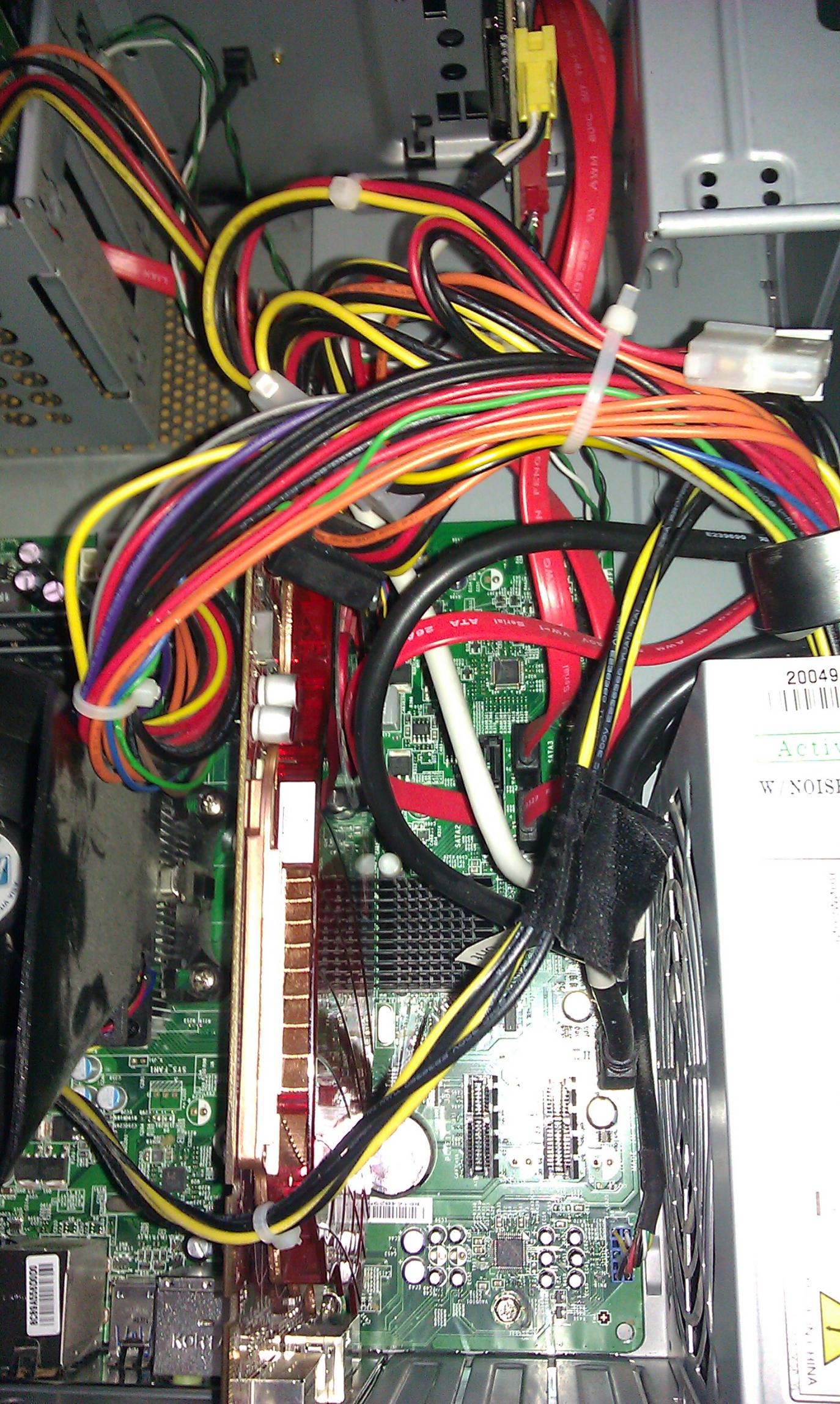 Das Netzteil befindet sich oberhalb der Grafikkarte ( PC im stehenden Zustand ). Eine 4850 brauch mehr Strom als ein Onboardlösung und mit dem Netzteil wird das nicht viel werden eine 4850 zu betreiben.