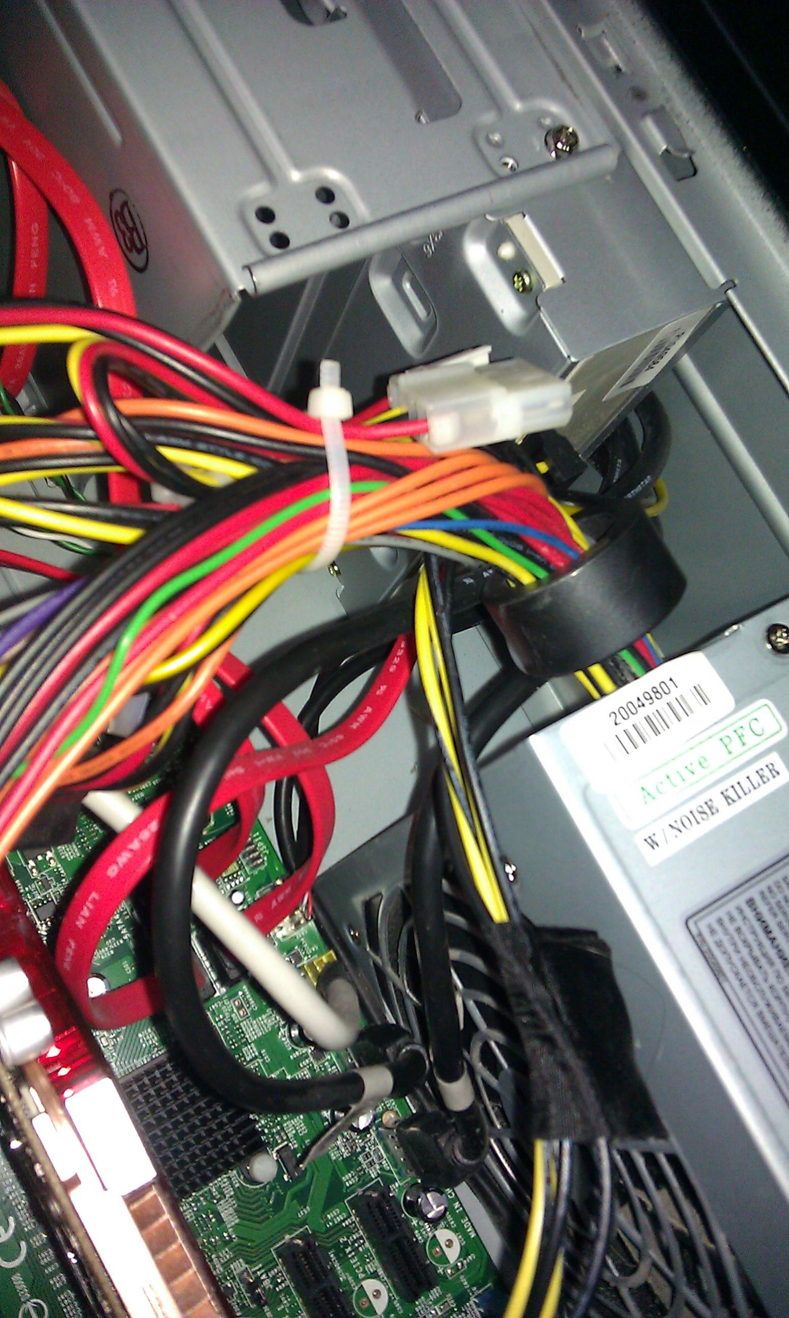 Das 350-Watt-Netzteil stellt lediglich 16 Ampere auf der 12-Volt-Schiene bereit und hat nur noch drei freie Stromstecker, einen 4poligen sowie zwei 15polige SATA-Stecker.