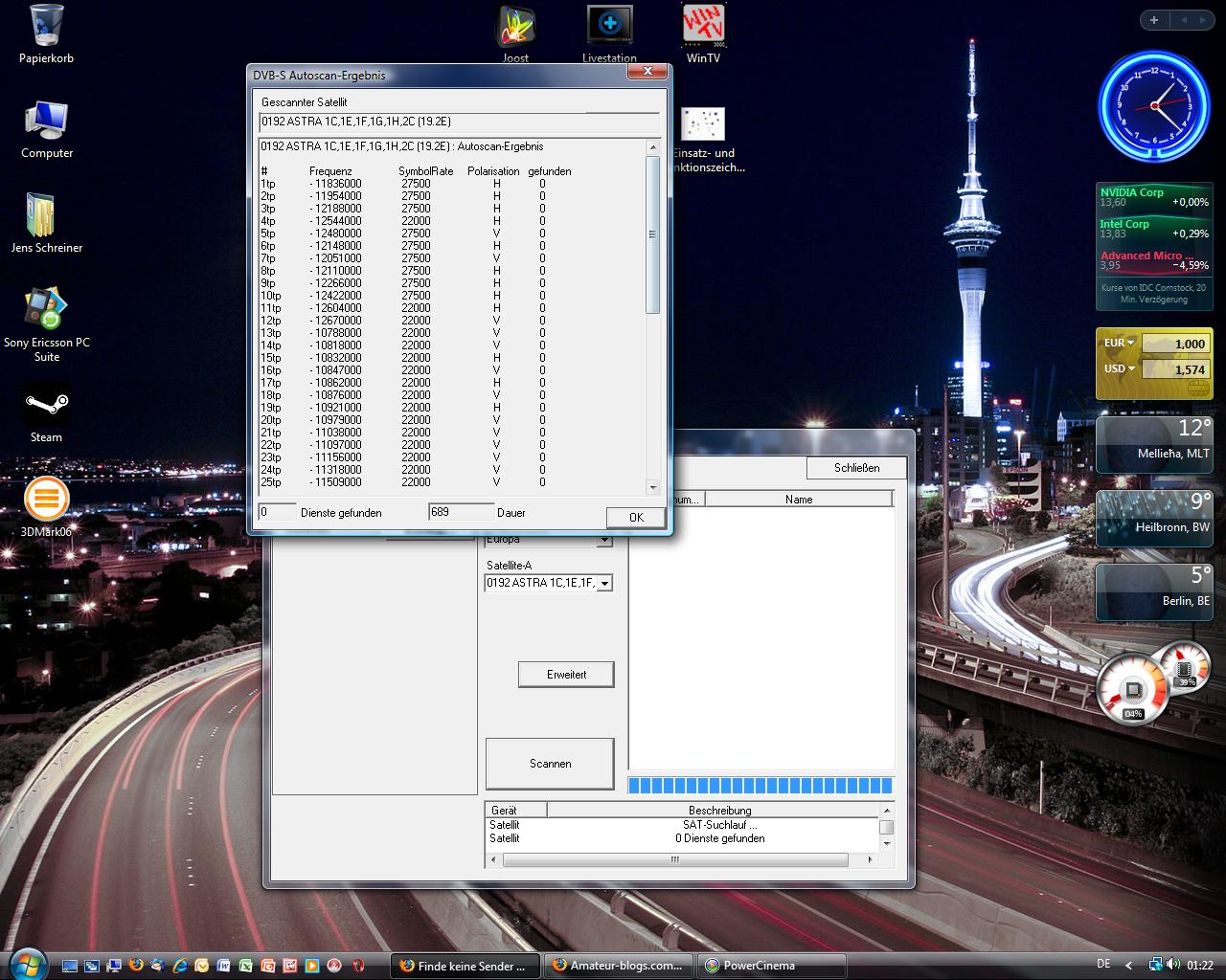 Woran könnte das denn liegen? Ich bediene zum ersten mal so eine TV karte. Zu meiner schande muss ich gestehen hat meine Freundin immer den Receiver eingestellt. Ich kenne mich zwar recht gut mit PCs usw aus aber TV + vor allem SAT ist mir einfach ein Phänomen.