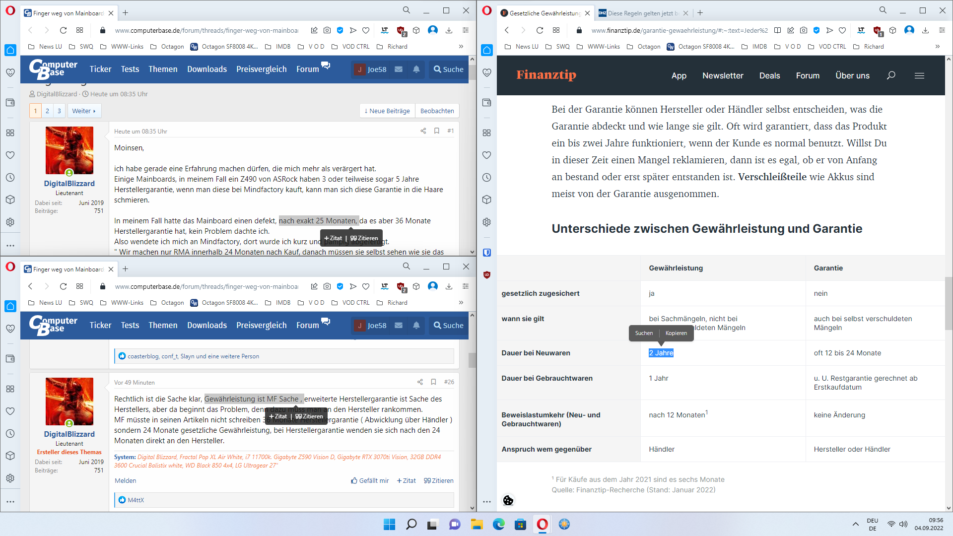 ASRock kann zu der Gewähleistung gar nichts sagen, sondern ASRock gibt freiwillig drei Jahre Garantie ab Herstellung. Wie der Händler es jetzt macht bleibt ihm überlassen, da er sich ja nur an die Gesetze halten muss.