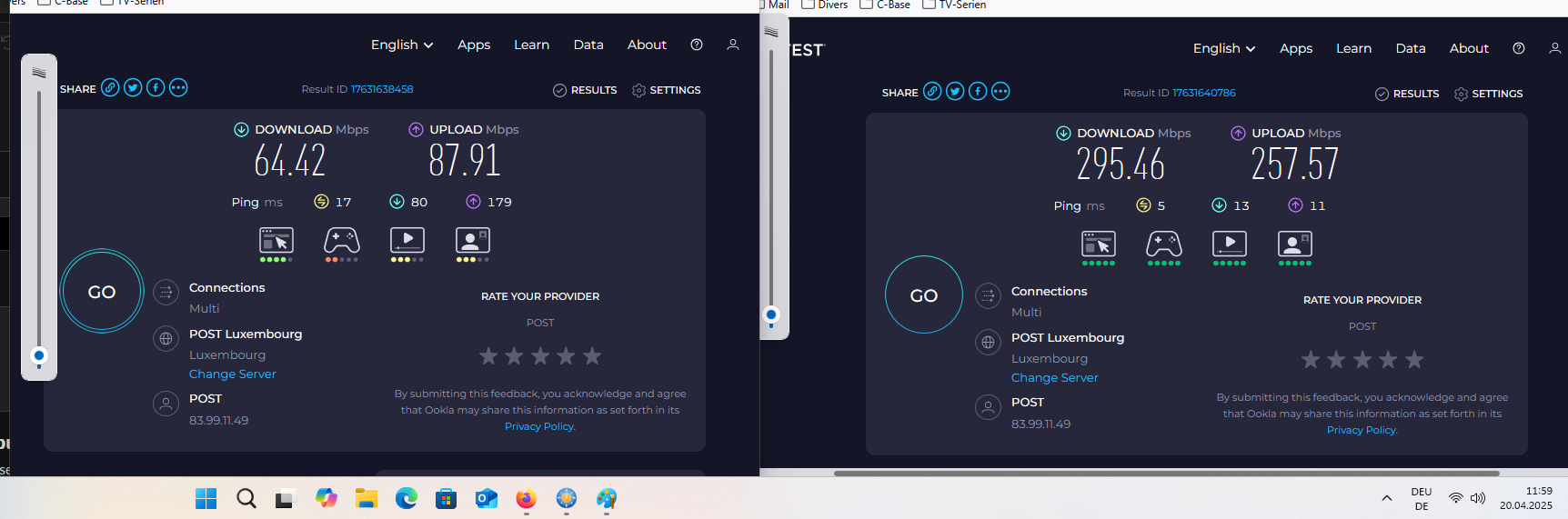 Wenn ich den Stick dann neu starte dann ist oft gut. Jetzt gerade zB habe ich laut dem Stick auch ein Geschwindigkeit von 110 Mbit.