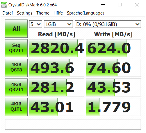 Lesen ist ja ok, aber Schreiben eine Katastrophe und weit davon entfernt, was das Laufwerk vor knapp zwei Jahren auf demselben Notebook an TB3 gezeigt hat.