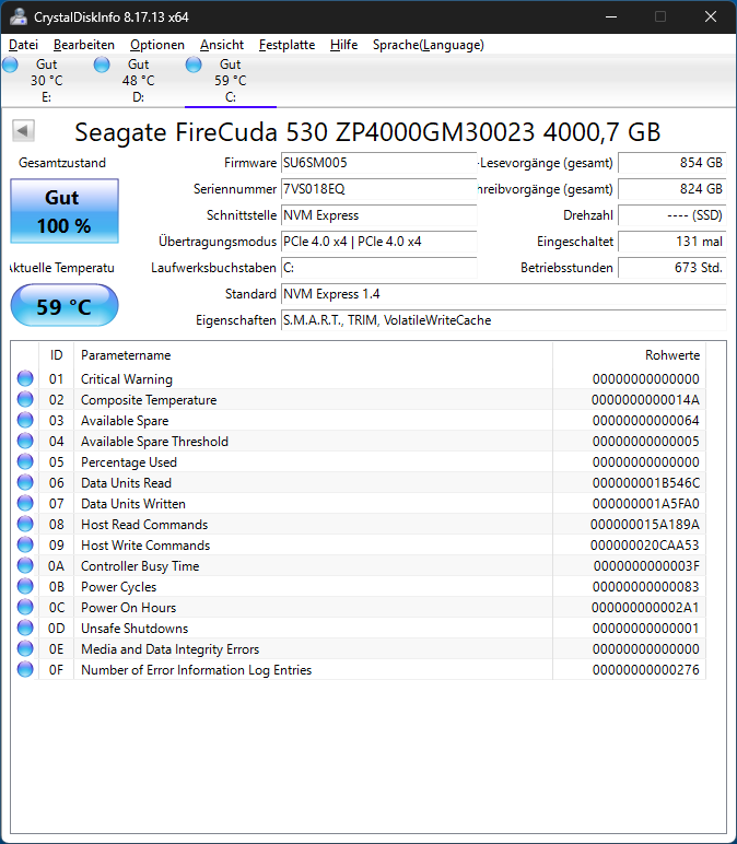 Bei Interesse lad Dir mal die neueste Version des Seagate-Tools runter & schaue, was dort angezeigt wird.