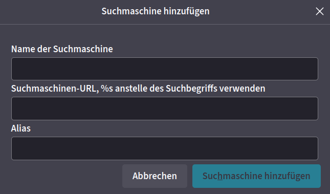 Also die Funktion mit Suchkürzeln nutze ich seit vielen, vielen wundervollen Jahren. Nur hat der bisherige Lesezeichen-Dialog vielleicht die Zugänglichkeit dazu vermissen lassen. Ich habe so an die 40 bis 50 Einträge in meinem „Suchmaschinen“-Lesezeichenordner: Wikipedia deutsch und englisch, Geizhals, Openstreetmap, f-droid, Wetter, nur um ein paar zu nennen. Alles nur ein oder zwei Buchstaben in der Adressleiste entfernt.🥰