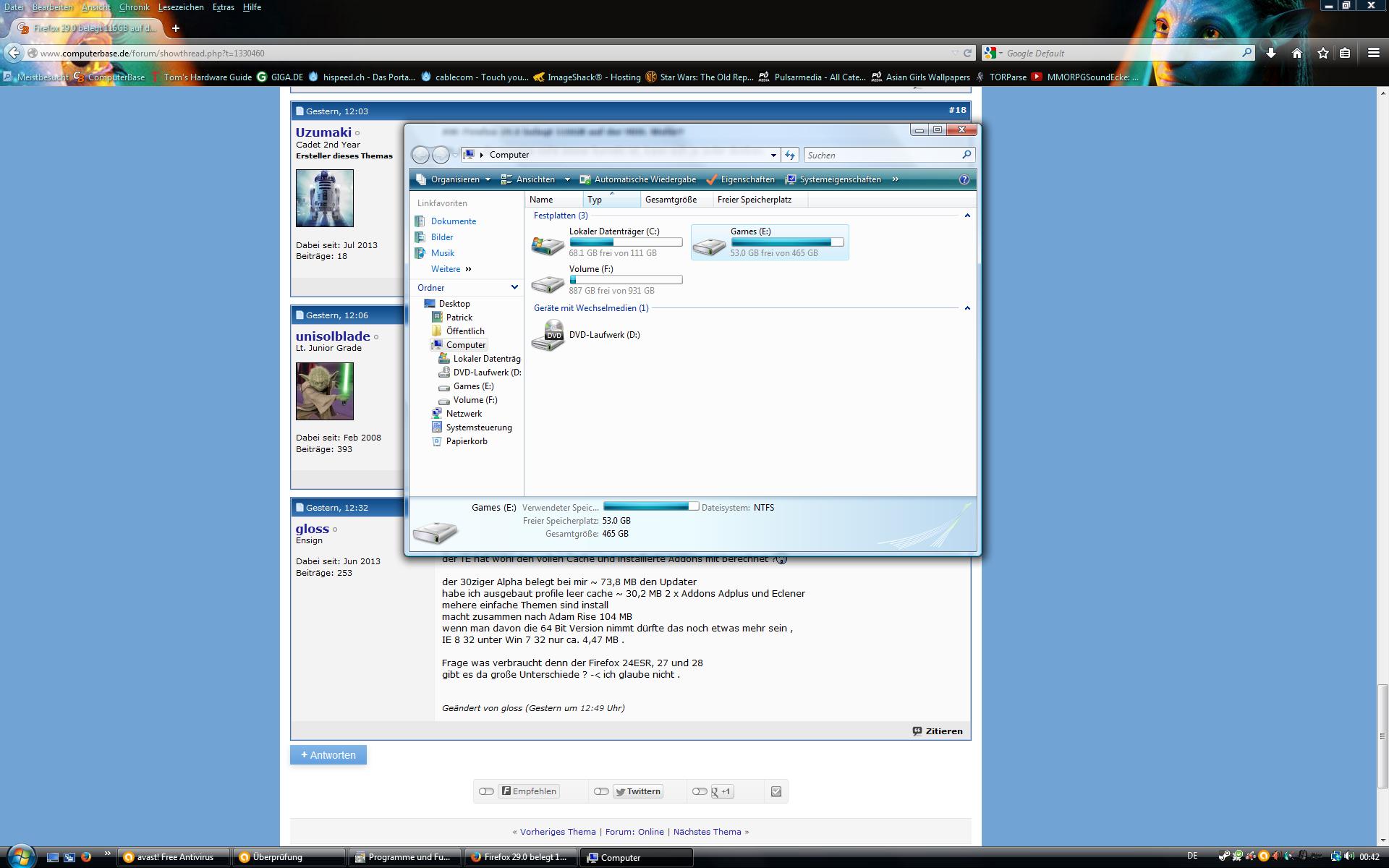 So Leute ich hab mich mal durch die Ordner durchgeklickt und geschaut. Wirklich was finden konnte ich nicht was mehreren GB in anspruch nahmen die zu FF gehören.