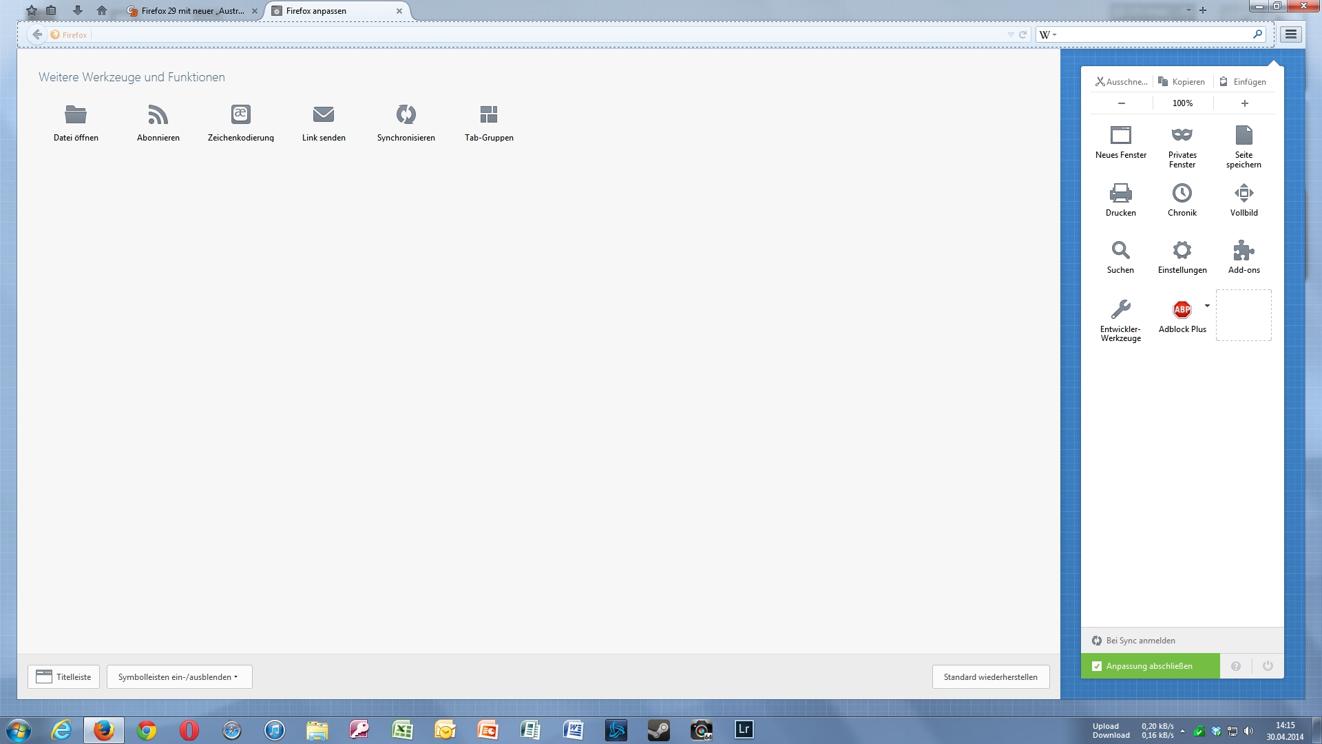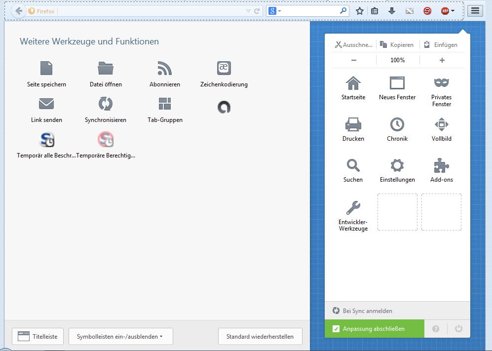 Man muss zwar einmal mehr klicken als noch unter Firefox 28, aber so kompliziert ist es dann doch nicht.
