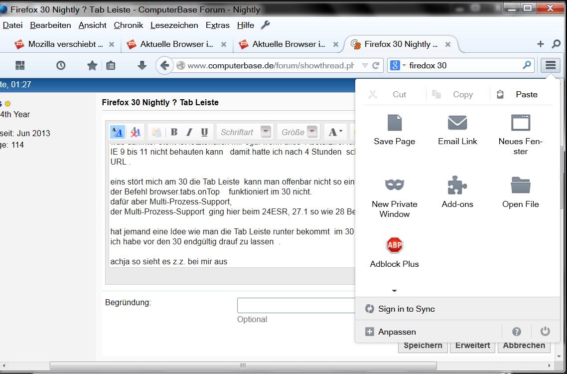 eins stört mich am 30 die Tab Leiste kann man offenbar nicht so einfach runter zu setzten