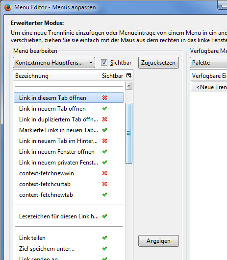 Wie gesagt, das hielt ich für Montagsmüdigkeit im Büro an XP bis ich eben auf meinem W8 im FF vollautomatisch (halber Verdauungsschlaf) die Links da öffnete wo sie sollten - weil unter das «Link in neuem Tab öffnen» oben an erster Stelle steht wo es hingehört!
