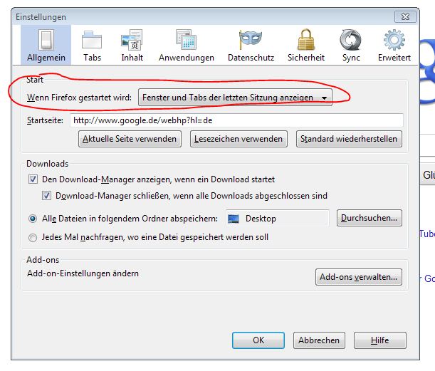 Im FF 3.6 war das nicht so. Dort verhielt er sich nach einem Neustart noch