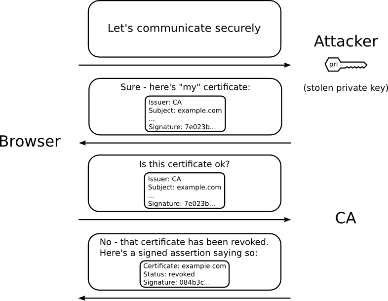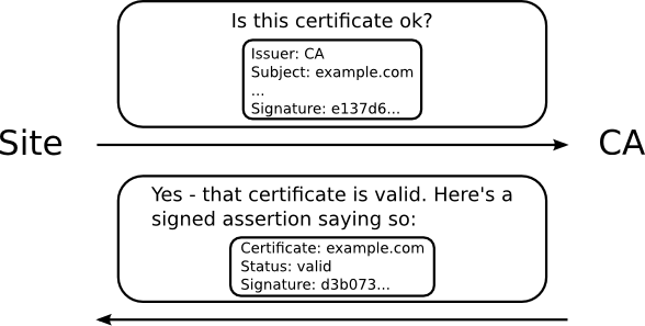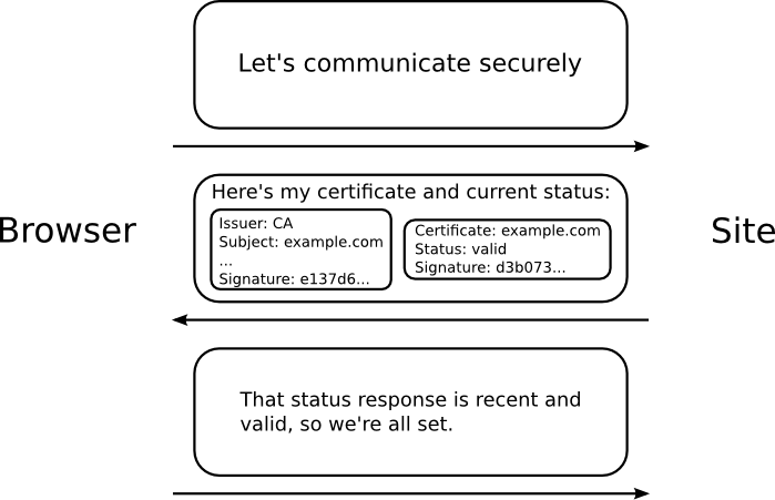 Online Certificate Status Protocol stapling, formell bekannt als die TLS-Zertifikatsstatusabfrage-Erweiterung, ist ein alternativer Ansatz zum Online Certificate Status Protocol (OCSP) um den Gültigkeitsstatus von digitalen Zertifikaten [...] zu prüfen. Es ermöglicht dem Zertifizierten die Aufgabe der Zertifikatsvalidierung zu übernehmen, indem er eine von der Zertifizierungsstelle signierte OCSP-Antwort mit Zeitstempel an den ursprünglichen TLS-Handshake anhängt („stapling“). Dieses Verfahren verringert den Kommunikationsaufwand zwischen Clients und Zertifizierungsstellen deutlich.
