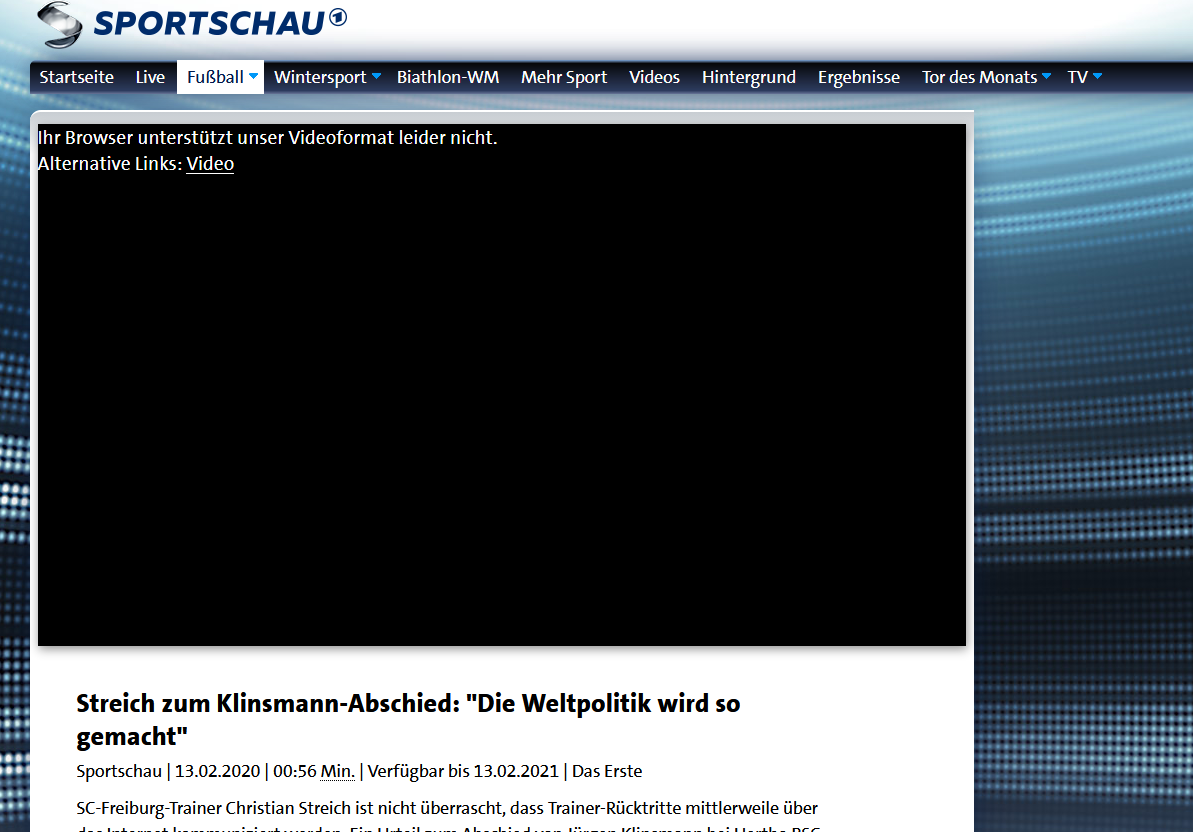 Sind auch keine besonderen Videos, es geht z.b bei daserste.de nicht, wenn ich dort beim Sport Interviews sehen möchte.
