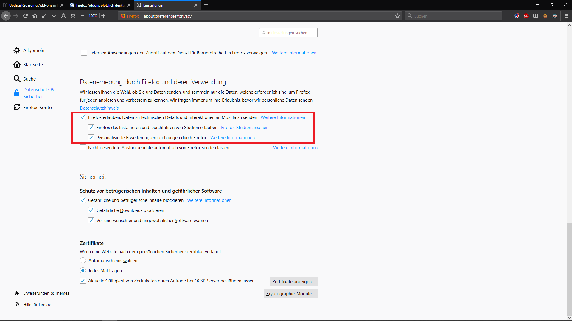 Das filtert leider auch die "Telemetrie" vom Firefox, wobei diese von mir abgeschaltet wurde