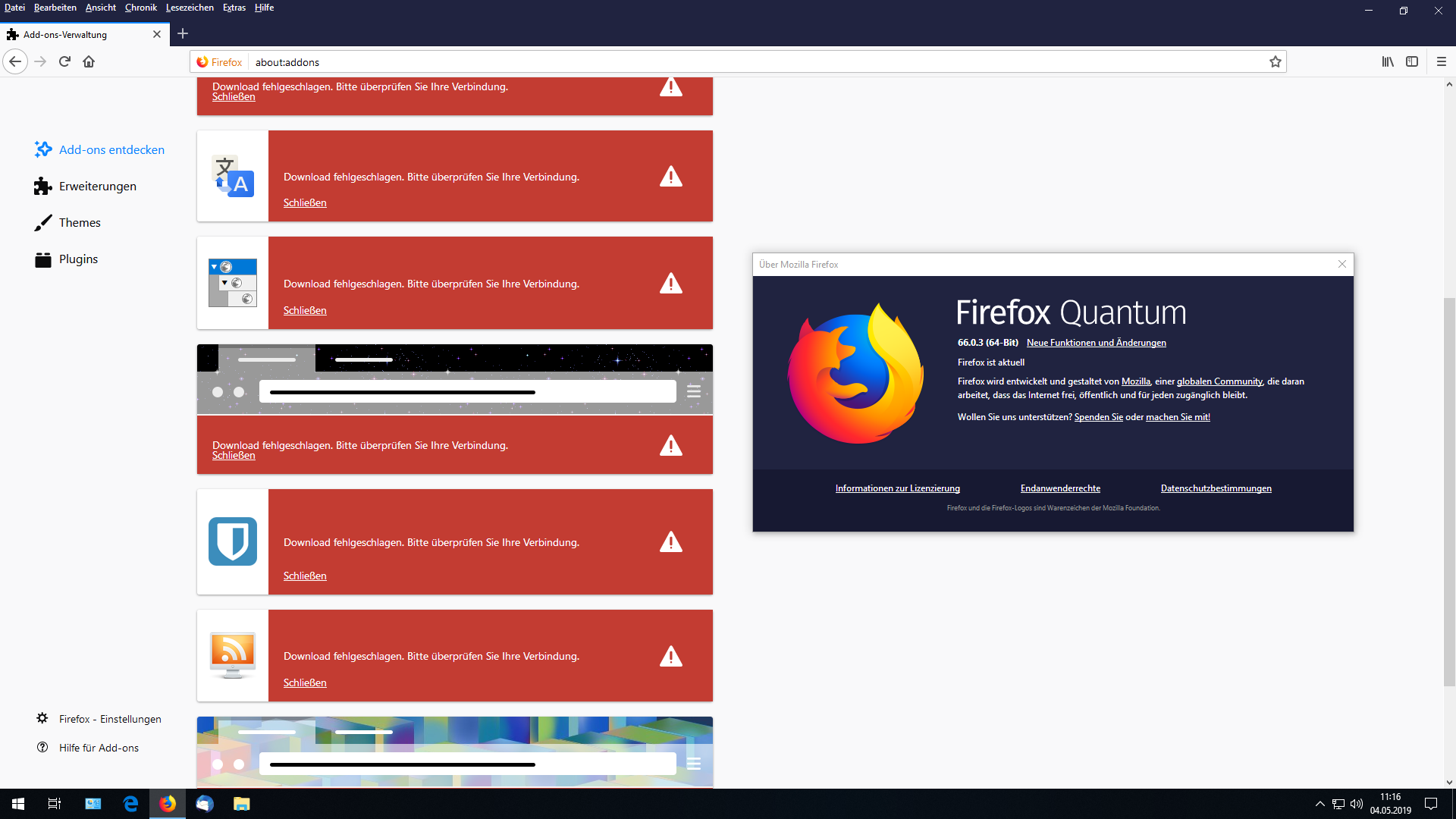 Meine Addon (und ich nutze nur 3 Stück) sind alle aktuell und wurden am 28-29.04.2019 geupdated).