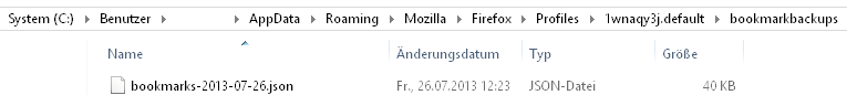 Diese sind z.B. als "bookmarks 2013-05-07.json" gespeichert, 90Kb groß, ist ja schon mal gut.