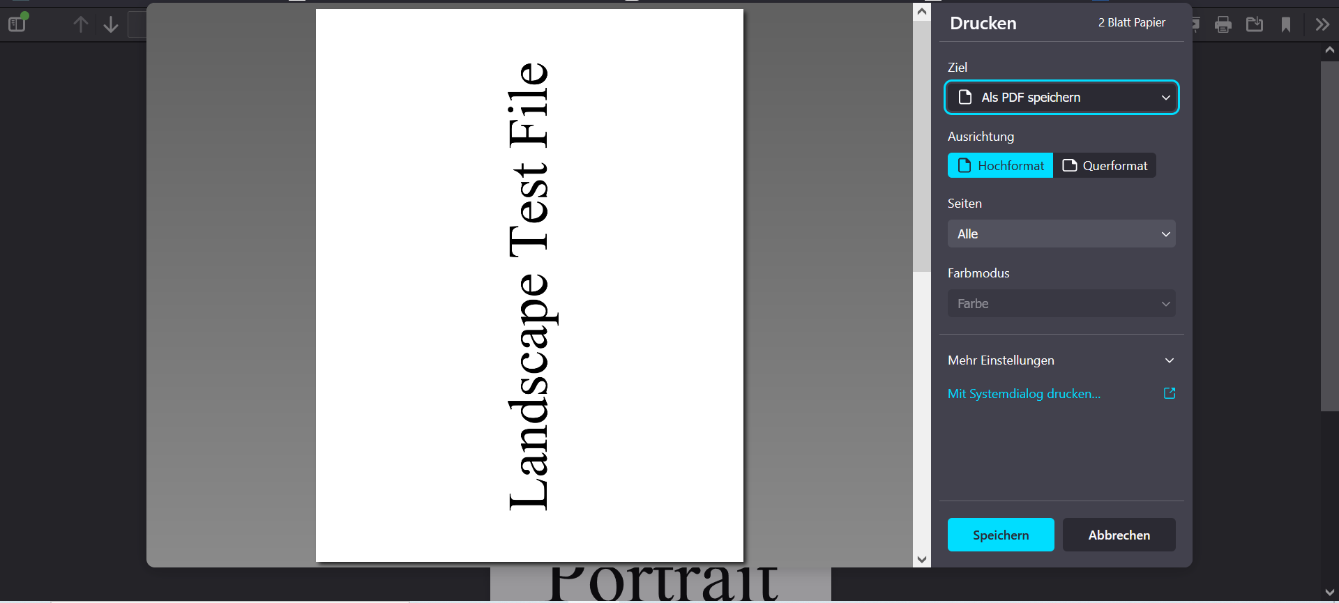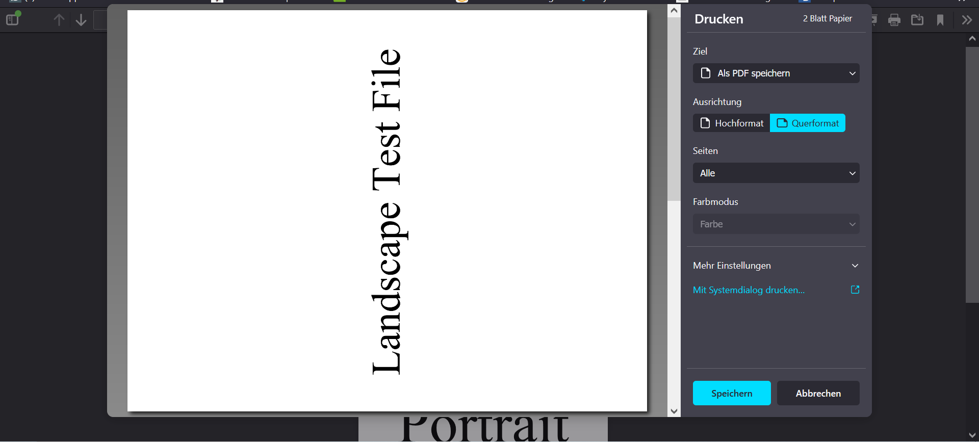 Firefox druckt Querformat PDF nur Hochformat