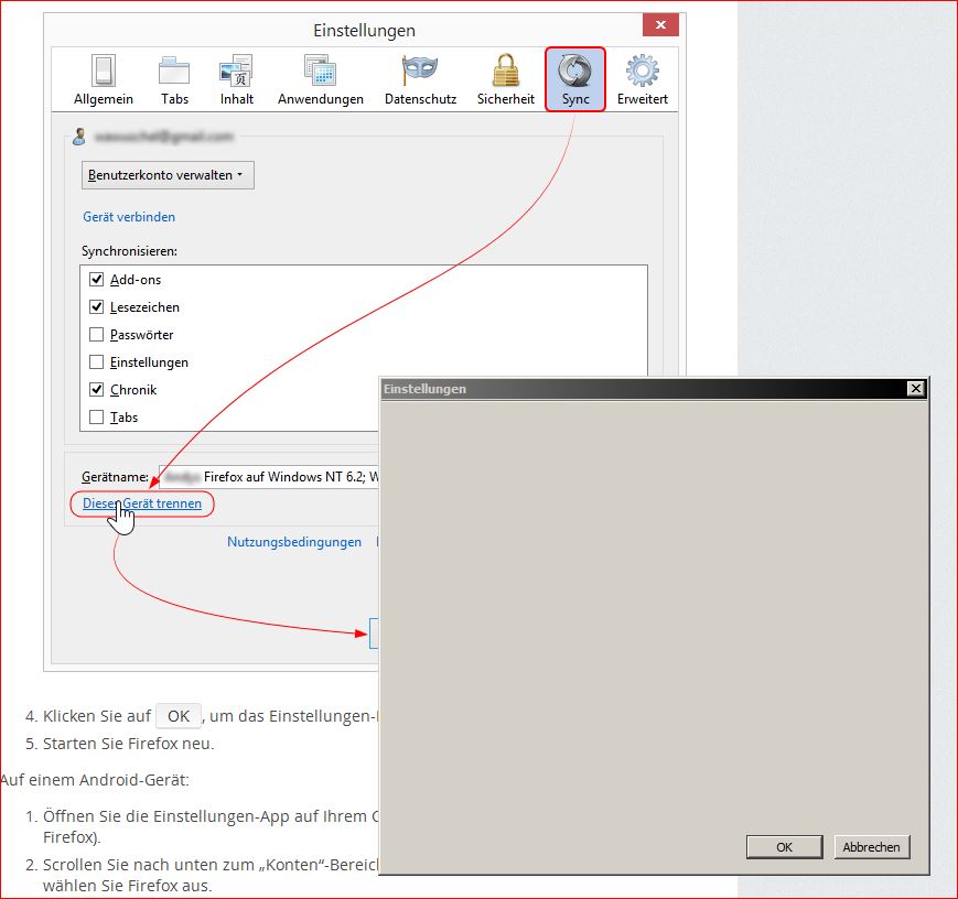 nachdem ich den android-browser nicht mehr einsetzen soll, hab ich auf dem smartfon ff installiert und dabei entdeckt, daß ff offenbar sein synchro geändert hat. also: pc trennen. ich rufe die einstellungen von 32.0.1 auf und sehe - nichts: