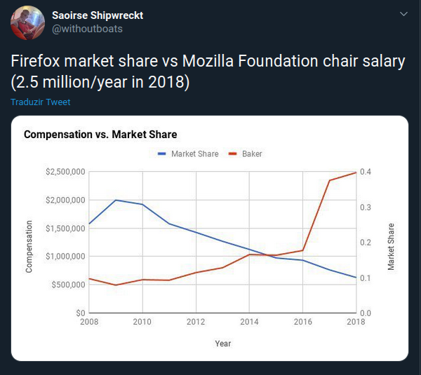 The Register schrieb:As a non-profit open-source operation, Mozilla spends as much as it receives; its 2018 staffing bill was $286m with a headcount of about 1,000, or about $286,000 per person, on average.