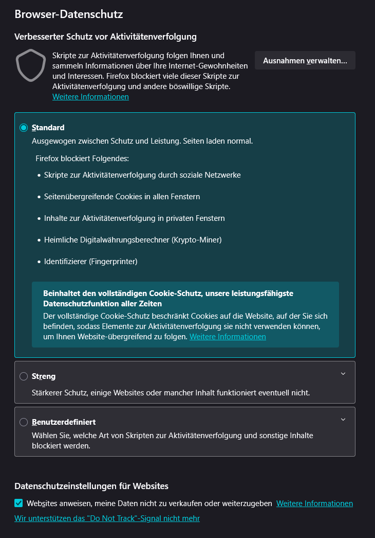 Ich habe schon viel probiert, Cookies & Webseiten Daten gelöscht, Addons und Themes deaktiviert oder Firefox im Fehlersuche Modus gestartet, aber der Fehler bleibt. Wenn ich ein neues Profil anlege habe ich den Fehler nicht, also ist es wahrscheinlich irgendein Konflikt mit dem Profil.