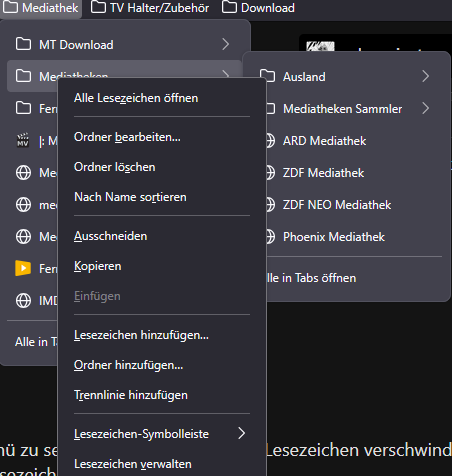 beim Firefox (136.04) verschwindet das Kontextmenü welches Ich mit rechter Maustaste öffne ständig hinter den Lesezeichen. Was dann die Aktion die Ich ausführen will unmöglich macht.