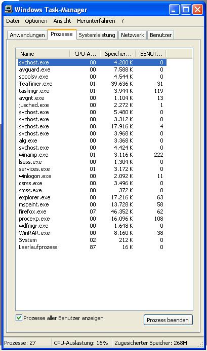Mein Surf- und Arbeits-PC zeigt in letzter Zeit ein komisches Verhalten. Wenn ich Firefox öffne und ein bis zwei Tabs geöffnet habe steigt die CPU-Auslastung auf 100%. Selbst wenn ich hier im Forum unterwegs bin und nichts weiter mache wird bei jedem Laden einer Seite der PC kurz komplett ausgelastet. Wenn ich nebenbei Winamp laufen lasse stockt das Lied und auch beim Seitenaufbau stockt es kurz.