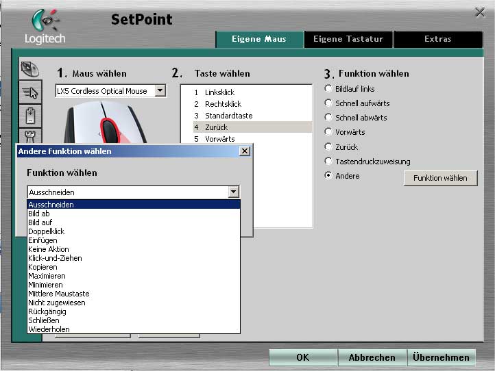 normal müsste das gehn, wenn du die setpointtreiber benutzt... dann musst du nur im treibermenu bei den vor und zurücktasten auf die Option "Standarttaste" umstellen. dann geht das auch