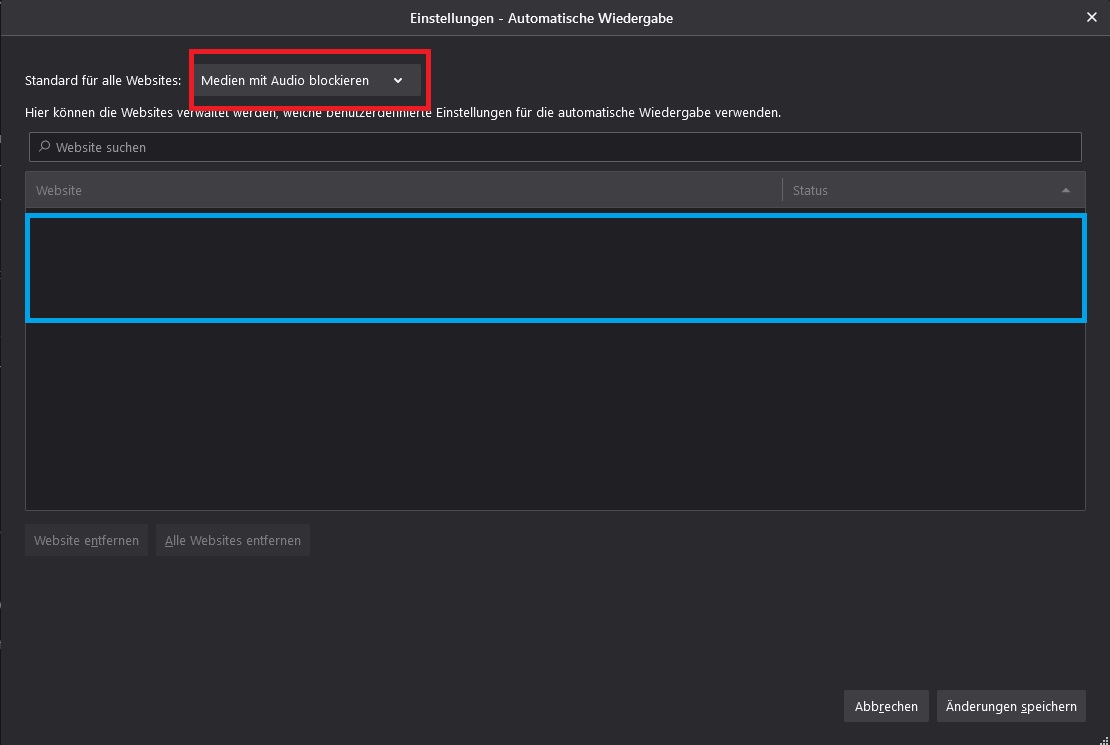 Standardmäßig ist hier nur "Medien mit Audio blockieren" aktiviert.